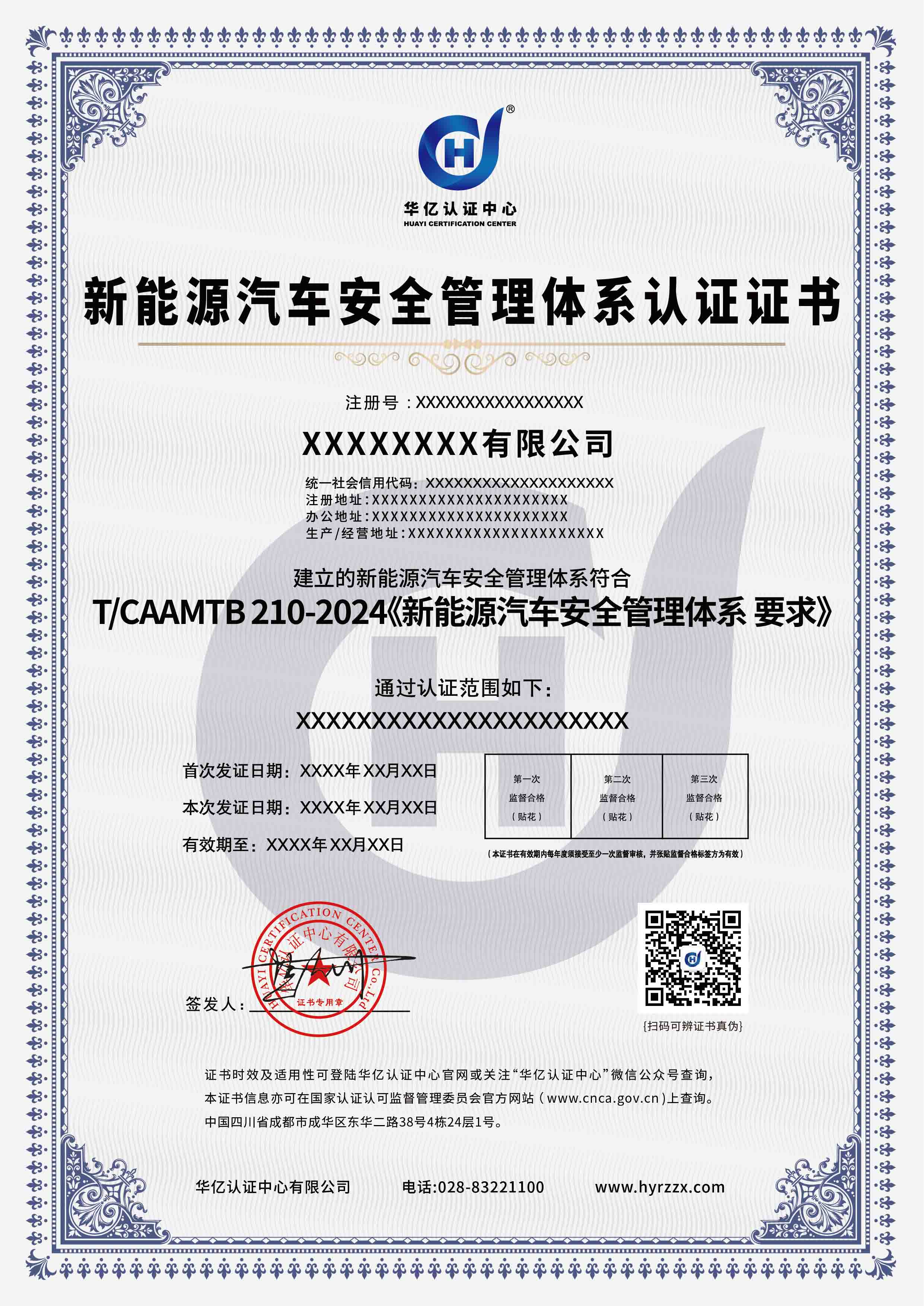 新能源汽车安全管理体系认证证书